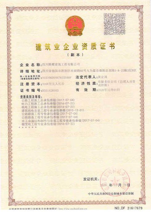 四川騰耀建筑工程有限公司(以下簡(jiǎn)稱:四川騰耀)成立于2010年1月,注冊(cè)資金1168萬(wàn)元,員工98人,其中各類注冊(cè)工程師62人(次),含高級(jí)職稱人員20人中級(jí)職稱人員42人,各類評(píng)標(biāo)專家15人,既有較強(qiáng)的專業(yè)知識(shí),又有豐富的實(shí)踐經(jīng)驗(yàn);擁有各類設(shè)備200余臺(tái)(套)。